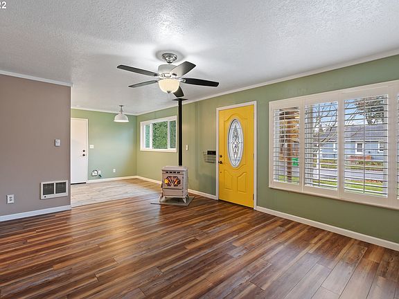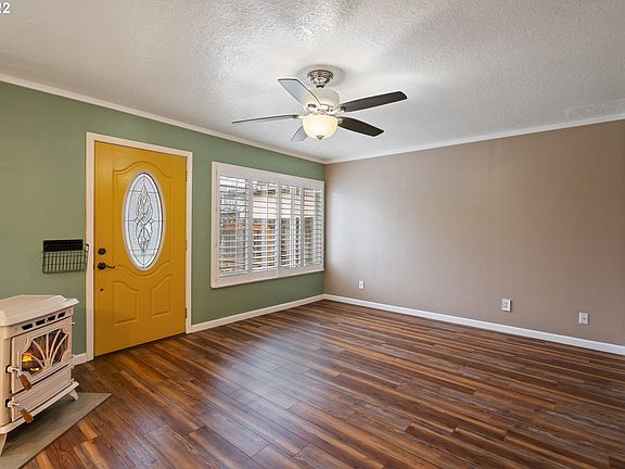 Immaculately maintained one-level home in St. Johns. Clean & move-in ready! Large living room w/ cozy pellet stove. Galley kitchen w/ bright eating area & tons of storage. New flooring & new exterior paint. Great fenced backyard w/ covered patio & garden boxes. HUGE OPPORTUNITY- Drop a Tiny home on the ready to go pad in back yard WITH alley access- already has 50amp service, full water & sewer hookup & wired ethernet! (Hosted a tiny home previously & rented space for $650/month!)