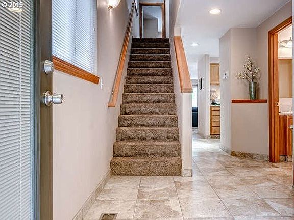 Fall in love with this beautiful Lents home. Perfect layout for entertaining w/half bath, great room & slider to private outdoor patio on the main; 3 spacious bedrooms/2 full baths upstairs, including a master suite, w/vaulted ceilings, walk-in closet & deck overlooking lovely Glenwood Park. The finished garage, gas frplc, tiled flrs & fresh paint throughout add to the livability. Convenient location, great schools! Open Sun 6/23 1-3:30