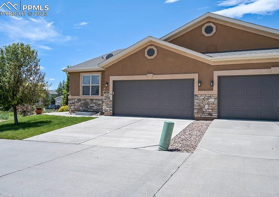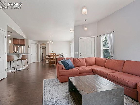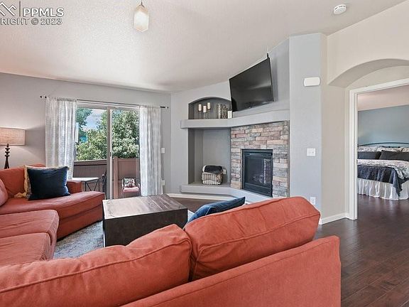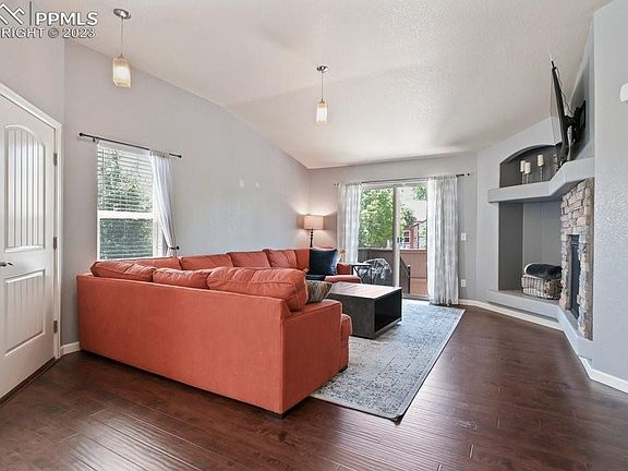 Within seconds from the Powers corridor, you will find this absolutely beautiful MOVE IN READY home! Upon entering this end unit townhome, you are greeted with hardwood flooring throughout the main level and an open concept living space. The living room features a gas fireplace with stone accents, perfect for cold Colorado mornings and evenings! Step from the living room into the primary suite, which features a LARGE bedroom, 5 piece bathroom with an oversized soaking tub and walk in closet! The kitchen is STUNNING with granite countertops, tile backsplash, stainless steel appliances, and walk in pantry! The finished basement of this home offers a large living space with two additional bedrooms and walk in closets as well as a FULL bathroom! There is an unfinished room to allow for storage that can easily be converted into another bedroom or bonus space. This home offers plenty of privacy with a fenced backyard and no neighbors to one side! The oversized two car garage provides ample space for two vehicles. This home is a quick drive to shopping, restaurants, Peterson, Schriever, and Fort Carson, making it an incredible opportunity for a new home!