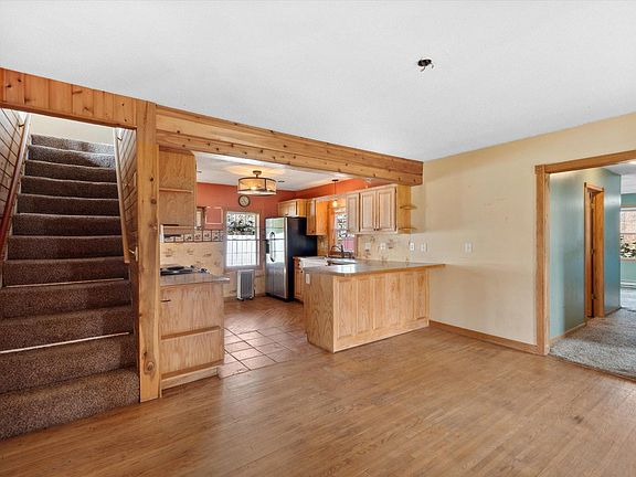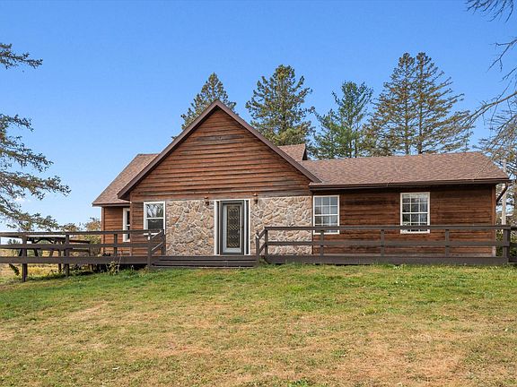 A spacious one-story home on 5 acres, featuring multiple stables and sheds. The main level has an open floor plan with 3 bedrooms and a laundry room. A wraparound porch offers sweeping views of private land, providing a peaceful, secluded retreat. Priced to sell. Easy to show.
