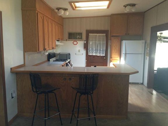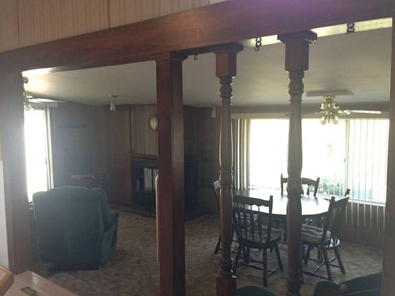 This is a great year around home situated next to State Land - lots of privacy! 700 ft Deeded Prime Sandy Shoreline for your use for Jet Skis, etc. Open & Airy Concept, Nice Kitchen with upgraded cabinets, dining area, snack bar, Great Room with Fireplace, Glassed In Sun Porch/Office Area/ or Den, 1st Floor Laundry, 2 Bedrooms Full Bath, Appliances included and Most Furniture. A Long Detached Garage with 2 Garage Doors for easy access front &