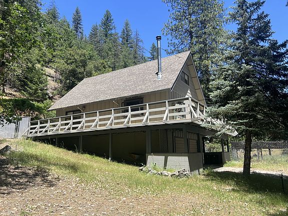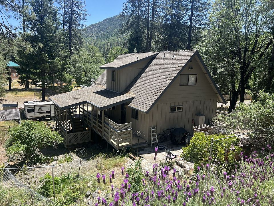 Trinity River is across the street at this 3/2 home! Desirable Bucktail fishing access on the Trinity River which is just a stone's throw away from this 3-bedroom 2 bath home! Great views from this 3 level home w/ first floor being a 24'X 36' 4 car garage and the upper two levels featuring the main house living w/ a large deck that wraps around three sides of the home to enjoy entertaining & the surrounding mountain & river views! Interior is bright & light w/ lots of windows & an open living/dining room & kitchen. Brick hearth sits in the corner featuring the wood stove & the Knotty pine wood lines the ceiling, walls, hallway and cabinetry give you a cozy country feel! Utility room and primary bedroom sits on the main floor w/ the additional two bedroom and guest bath sit on the top floor. The large yard is mostly fenced in w/ plenty of room to garden, relax & sit at the firepit, keep the kids &/or furry friends contained. Back patio has the hot tub spot to chill out and overlooks the multiple landscaping areas. A great spot to call home or use as a possible vacation rental! Come for the world-renowned Fishing, rafting, hiking & more! Trinity County Public Utility has best power price in CA & Water is affordable bucktail sub!