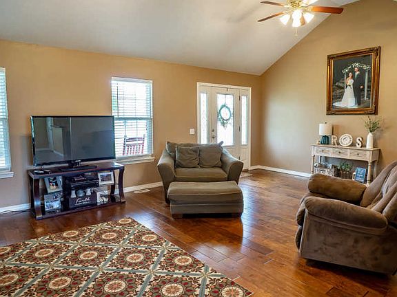 Looking for a home that is affordable AND efficient? How about a spacious lot with country feel but close to town and desirable schools? You must see this immaculate, 1 level home with vaulted ceiling and open floor plan. Featuring a large master suite with his and her closets as well as 3 additional bedrooms You will love the wood floors that run throughout the living area and a generous eat-in kitchen that overlooks the back yard with cozy firepit. Keep everyone safe and warm with the in-ground storm shelter and WoodMaster Stove. The external wood stove can heat the home and hot water allowing you to spend your money on more important things than the electric bill. Central electric is also installed for those who prefer. This home even qualifies for 100% RD loans! Don't wai