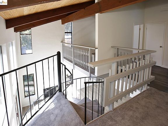 Exquisite remodel - inside and out. Spiral staircase descending to main floor. Vaulted cathedral ceilings & floor to ceiling windows create a dramatic effect. Loft room with private bath overlooking living room and deck. Fully equipped kitchen with all new appliances and custom cabinets. Indoor laundry with washer included. 2-car attached garage with new door and remote entry, containing large workshop area and window. Space for two additional cars in driveway. New laminate flooring throughout living room, kitchen, hallways and baths. New wall-to-wall carpet throughout bedrooms. Spacious new redwood deck nestled in wooded area. Access via kitchen or living room. Minutes away from Highways 13 and 24, Montclair business district, Lake Temescal, Joaquin Miller Park, with quick access to Orinda and points east as well as Oakland and San Francisco.