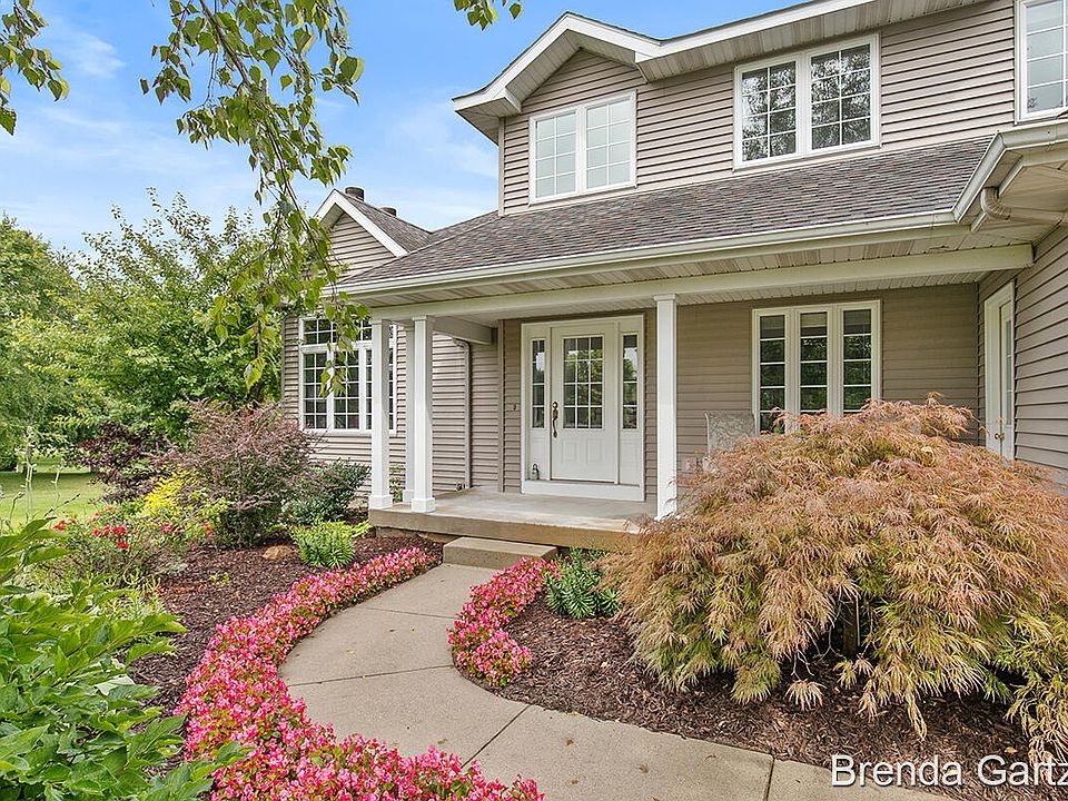 This home is maintained with pride, on a quiet setting yet 5 minutes to Northland Dr and Hwy 131. There is plenty room for an outbuilding per township codes, on this sprawling 2+acre lot in a highly sought after, Rockford neighborhood. Enjoy this 4 bed/3.5 bath home, with 2 fireplaces & an oversized 4 car garage. The large family room has gorgeous views of the back yard. Entertain with a generously proportioned kitchen & dining room, a living room w/ fireplace, a 1/2 bath & laundry, on the main floor. Upstairs are a master en-suite w/ walk in closet, 2 bedrooms, full bath & an office/reading area. Lower walkout offers a family room with a fireplace, bedroom & full bath, large storage room, & patio. Highlights are central air, UG sprinkling, quality flooring, plentiful storage!
