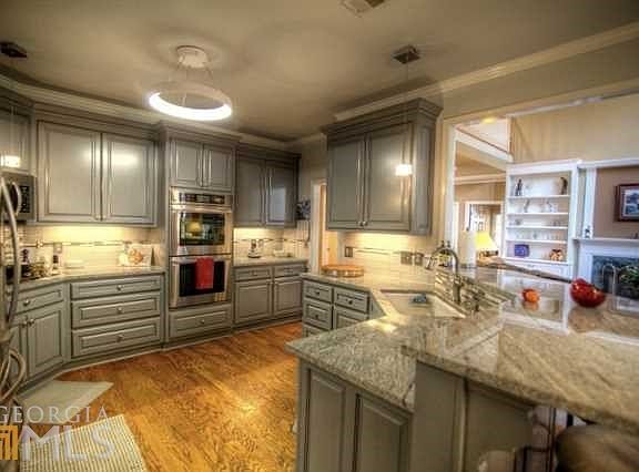 Grand Southern living in Polo Fields. This is a wonderfully updated master on main plan, with recently renovated kitchen and master bath with custom stone work in the shower and around the tub, granite vanities and new tile. The kitchen has all the custom cabinets, double ovens, custom tile backsplash and gourmet gas cooktop. 3 bedrooms upstairs, 1 with private bath, 2 share a Jack and Jill. An outdoor space to entertain and relax, screened porch with 2 fans, and pergola over the patio with 2 fans. All this and more in this stunning Polo Fields home.