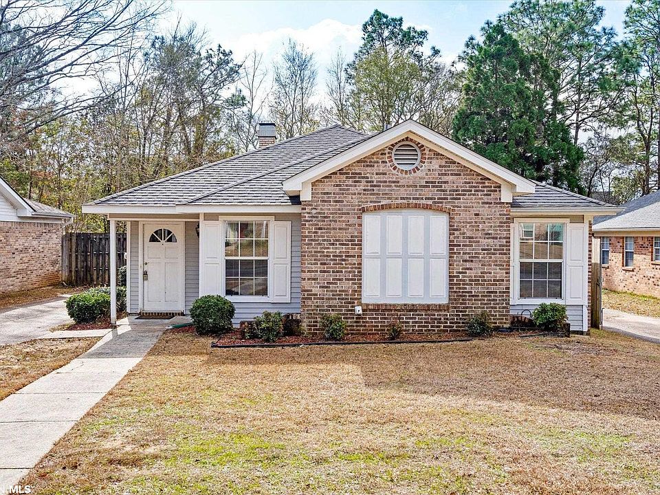 Are you ready to move? Take a look at this amazing patio home located on a cul-de-sac in Heritage Woods Subdivision in the heart of West Mobile. This brick home features a great floorplan that has vault ceilings in both the living room and master bedroom. The living room showcases a gas burning fireplace and book shelves as well as a sliding door leading to a little private courtyard. All the bedrooms have nice size walk-in closets giving ample storage space. The kitchen has hardwood cabinets with plenty of storage and counter space. The dining/breakfast has a lot of natural light. According to the sellers, the roof was replaced in 2018 and a new HVAC unit in 2021 along with the water heater as well. There is also a nice rear patio and a storage room located in the back of the home. Make plans now to see this home. All measurements are approximate and not guaranteed, buyer to verify.