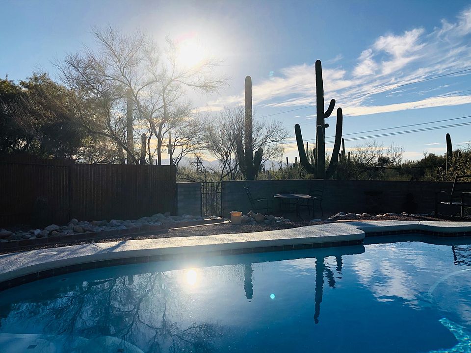 LOOKING FOR SPACIOUS OUTDOOR LIVING, PRIVACY, AND A CENTRAL LOCATION? MOVING TO TUCSON? This charming 3 bedroom, 2 full bath burnt adobe brick home located in the heart of the most-desirable Catalina Foothills neighborhood is ideal for you. This home sits along a natural wash, is on a full one acre, and offers a relaxing southwest retreat and beautiful mountain views. Enjoy your own private, sparkling pool away from neighbors and without street noise. Excellent work from home location with loads of natural light and tranquility. Great schools too! Single level, travertine marble floors, French doors, Arizona room, office area, outdoor bbq, washer/dryer, and LG appliances. Enjoy the Tucson sunsets and abundant saguaros and desert cacti from the patio, or watch the city lights from the pool's sundeck. Why look further when you can be close to everything - AJ's Fine Foods, La Encantada Mall, Tucson Mall, Safeway, Casas Adobe Shopping Center, Trader Joes, and Wholefoods. Rent is $2900/month UNFURNISHED - 12 months or 24 months term. To pre-qualify for showing, income must be 3 times monthly rent. Self-employed applicants require 2 years proof of income. Pets subject to owner review. Please call or email us to learn more. Tenant pays for electric, gas, water, and trash. Sign a lease by May 1 and weekly pool service, quarterly pest control, and bi-annual heating /cooling filter changes will be included in rent.