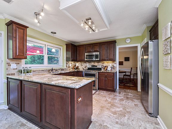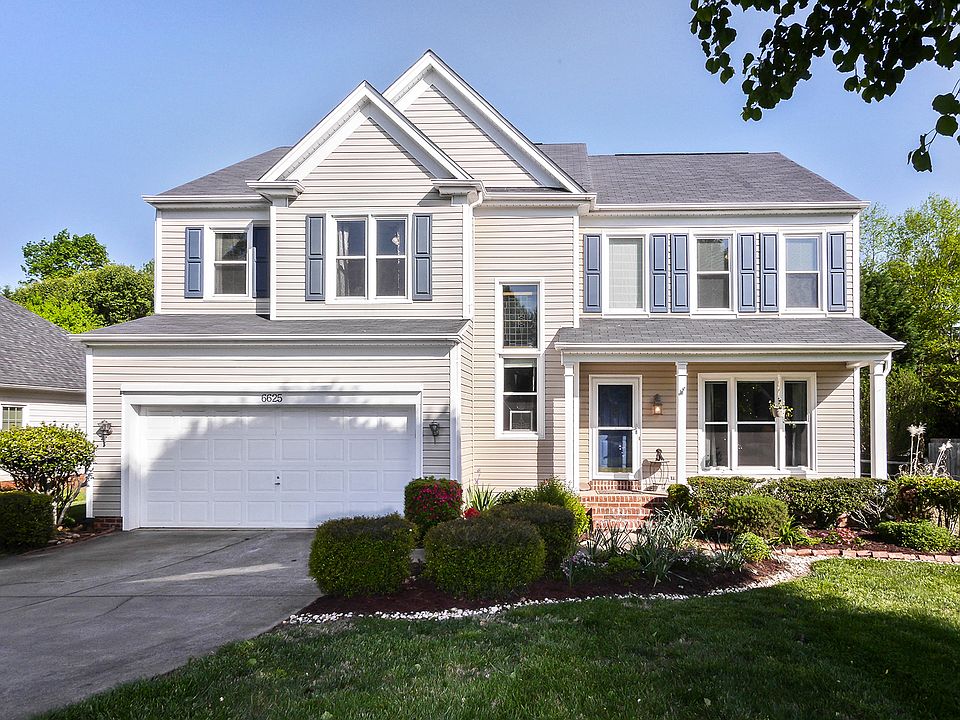 Beautiful curb appeal w/new, low maintenance vinyl siding & windows & well-manicured lawn & landscaping. Fully renovated including paint, decorator carpeting, bamboo floors, ceramic tile, & new fixtures. Gorgeous kitchen custom designed to maximize cabinet & counterspace-high-end cabinetry, granite, tile backsplash, under cabinet lighting, & stainless appliances including dual baking chamber gas stove. Great room remodeled to add sliding glass doors leading to extended rear deck-perfect for extending entertaining. Huge master w/vaulted ceiling, lots of natural light, & renovated bath-custom cabinetry, dual sinks, granite, custom tile, frameless glass-truly gorgeous space. Walk-in master closet runs the full length of the master bath. 4th bedroom has secondary space that makes a great work out or play room. Fully fenced w/fruit trees & garden beds. Very private yard w/storage shed. N'hood amenities include pool, tennis, playground, & more! Just minutes to I-485, I-85, & I-77.