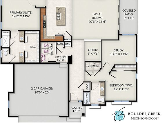 By offering both ranch-style and two-story home designs at Silver Leaf, many home shoppers will find what they seek. Those looking to "right size" out of a family home will love the convenience of our ranch-style plans that prioritize main-floor living. If a two-story design is more your style, you'll feel right at home knowing Boulder Creek's low-maintenance lifestyle combines with construction techniques and materials selected for durability and efficiency.