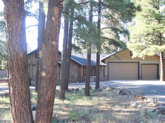 Historic Malpais Rock Home with Newer Addition giving this home a spectacular open floor plan, Beautiful Kitchen with newer stainless steel appliances Farmhouse Sink Granite Counters and Walk In Pantry, Gas Log Fireplace in the Great Room, large Master Bedroom, Hard Wood Floors throughout Great Room and Bedrooms, 3 Car Garage, and set on a .91 acre lot surrounded with a Stucco Fence and chip sealed circular driveway. Enjoy the mountain views from the backyard, huge Ponderosa Pines, and within a 10 minute drive into Flagstaff. There are also plans available for an addition previously approved by the county for an addition of a huge master bedroom. 3D Virtual Tour Available on Monday 5-25.