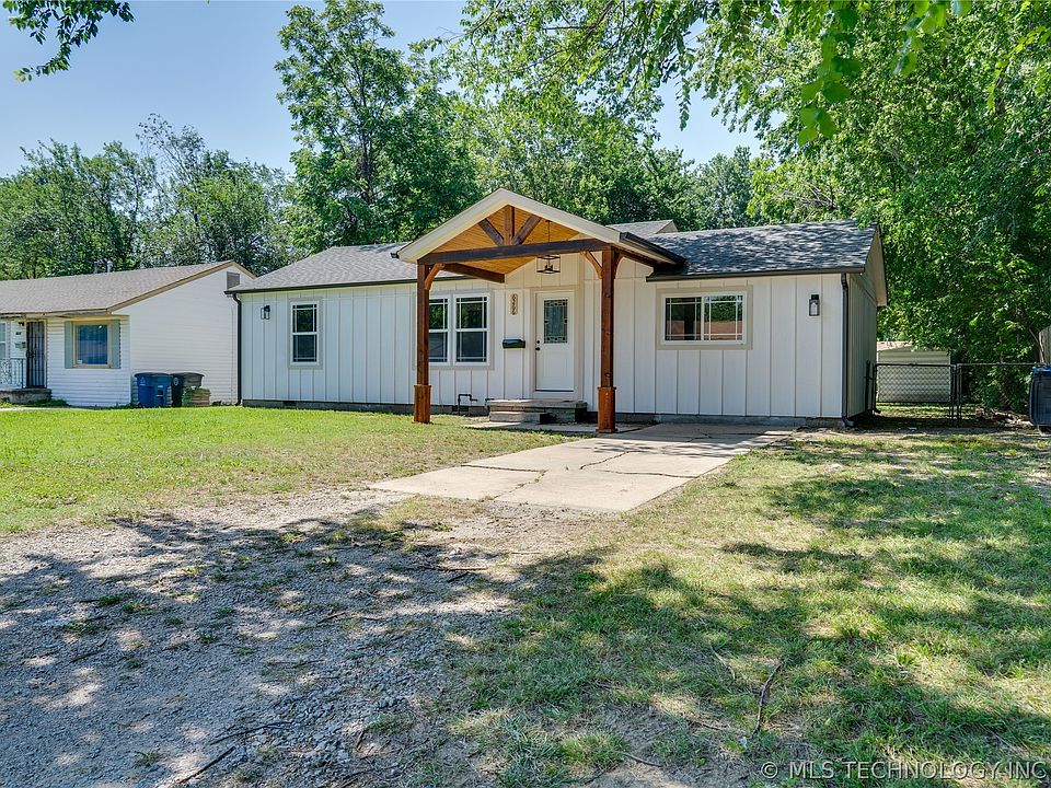 Step into your dream home today! This stunning abode boasts a complete transformation with a new roof, plumbing, electrical, windows, exterior and interior paint, gutters, water heater, and HVAC. The kitchen features beautiful butcher block countertops, while freshly stained hardwood floors grace the living area. Step outside to a brand new porch adorned with amazing light fixtures. Nestled on a wonderful lot, this home is waiting for you to make it yours! Home's Convenient Access to Highways and Central Location Makes It Easy to Get Anywhere in Tulsa.