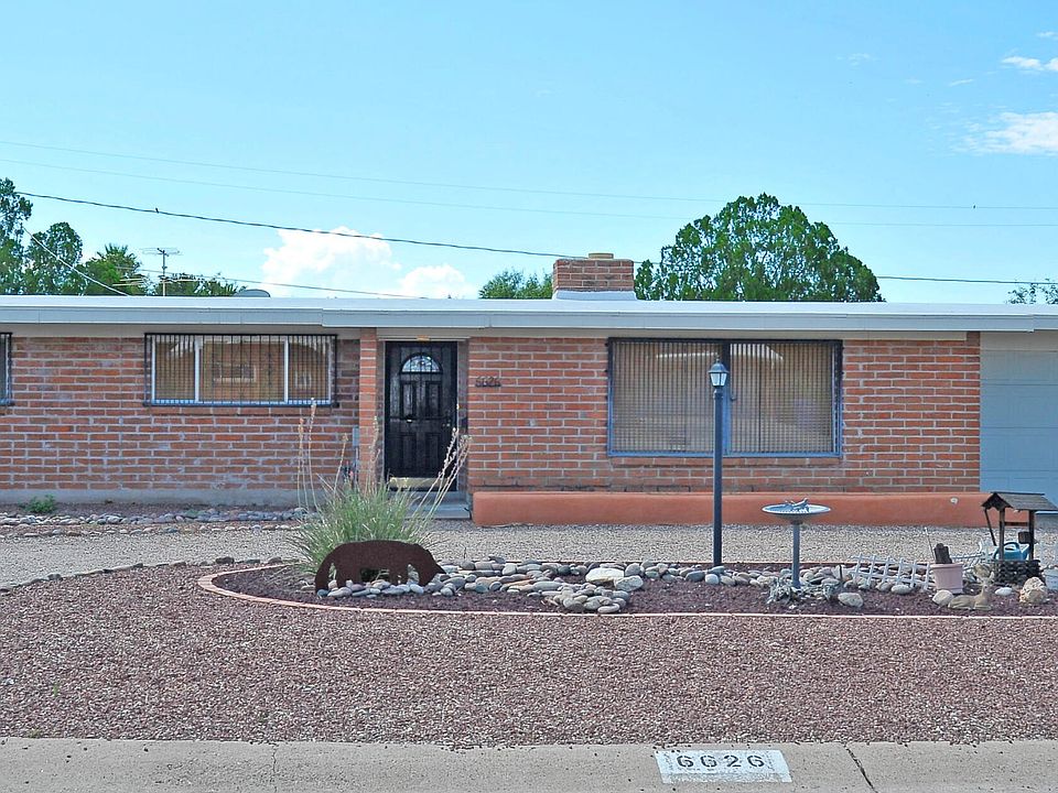 Located in Casa Loma Estates, one of Tucson's hidden eastside neighborhoods. This 3-bedroom/2-bath mid-century adobe home is boasting with character. From the welcoming curb appeal to the inviting living room featuring a double-sided fireplace shared between the formal living and family room. Spacious kitchen with granite counters off the breakfast nook/family room is perfect for entertaining. Generous size bedrooms with plenty of closet space, primary ensuite with double vanity, and a low care backyard along with a covered patio to sit and enjoy Tucson's beautiful sunsets. Large storage room off the 2-car garage. Freshly painted and move in ready! Just bring your imagination to design and create your new dream home! Close to shopping, restaurants and DMAFB. A must see!