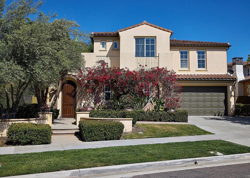 Welcome to your dream home in south Carlsbad! This spacious 5-bedroom, 4.5-bathroom boasts a private courtyard entrance, providing a serene welcome every time you return. With a fully owned solar system, your energy bills will be significantly reduced, giving you peace of mind and extra savings. Step inside to discover a freshly painted interior, highlighting the expansive gourmet kitchen featuring an oversized island, wood cabinets, granite counters, stainless steel appliances (including a new dishwasher), wood floors, and newer carpet. Enjoy a full-sized bedroom with En-suite ¾ bath downstairs for guests or use it as a separate office. The kitchen seamlessly flows into the family room, making it the perfect space for entertaining or relaxing. Host dinner parties in the formal dining room and unwind in the separate living room, both offering elegance and comfort. The large master suite is a true retreat, complete with a spacious bedroom, luxurious Travertine counters, a walk-in closet, and a large tub for ultimate relaxation. 2 of the secondary bedrooms are spacious and bright and are connected with a Jack-n-Jill bathroom. The third secondary bedroom is in its own wing of the upstairs and can be used for a teenager suite, guests, or In-law space. Enjoy the upstairs laundry room for convenience with full washer and dryer included. Upgrades in this home include plantation shutters, high ceilings, recessed lighting, and a spacious loft for an extra working space or den for the kids. Enjoy the balcony off the front of the home which overlooks the courtyard and greenbelt. Outside, the spacious backyard awaits, offering a tranquil oasis with its own stone waterfall, intricate Paver system decking, BBQ island, and inviting sitting/dining areas complete with a built-in fire pit. This entertainer's paradise is perfect for hosting gatherings with family and friends. Residents of La Costa Greens also enjoy access to a fabulous community center featuring a pool, exercise room, and stunning rec room. Plus, Alga Norte Park is just a short walk away, providing even more recreational opportunities. Conveniently located near shopping, freeway access, golf courses, beaches, and award-winning schools, this home truly has it all. Don't miss the chance to make this your forever home!