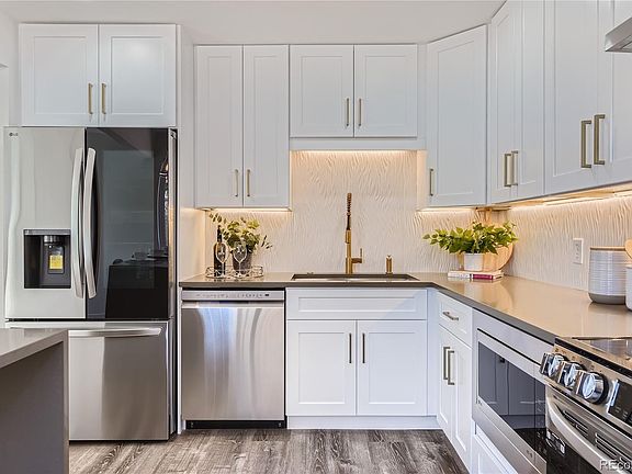 Discover the epitome of comfortable living in this beautifully renovated home nestled in the heart of the popular Euclid Heights community with no HOA! With its serene surroundings and convenient location, this residence offers a harmonious blend of modern amenities and timeless allure. Step inside to find a spacious layout adorned with 5 bedrooms, including a luxurious primary suite, and 4 bathrooms ensuring convenience for all occupants. The fully updated custom kitchen offers brand new 42 inch shaker-style cabinets, quartz counter tops with a waterfall feature island, all brand new stainless steel appliances with a built-in microwave, custom tile backsplash, high-end faucet, and new light fixtures throughout. Spacious dining room with a wood burning fireplace make it a perfect space for gathering and entertainment. A very spacious bonus room offers versatility and can be used as an office, one or two more bedrooms could be added, maybe a yoga studio with a gym or a fantastic game space. The options are endless! Fully finished basement offers another family room, a bathroom and a non-conforming bedroom. The outdoor space offers two new concrete patios ideal for entertaining guests or simply unwinding amidst nature's tranquility. Additional highlights include a fully finished 2-car garage, an RV parking, easy access to parks, trails, top-rated Littleton Public Schools, shopping and dining at Southglenn Mall or Downtown Littleton within a short drive. Other noteworthy upgrades include: a brand new roof, new furnace, new water heater, new A/C unit, all new luxury vinyl flooring, new carpet, new exterior and interior paint, new windows, new tile, all new doors, trim and baseboards, new custom staircase and cast iron railing, new concrete patios. There is nothing left to do except for move in and enjoy an amazing lifestyle. Don't miss out on the opportunity - schedule a showing today and experience the comfort and convenience this gorgeous home offers firsthand!