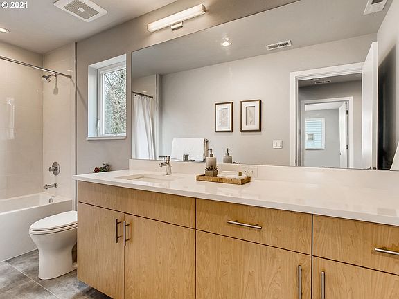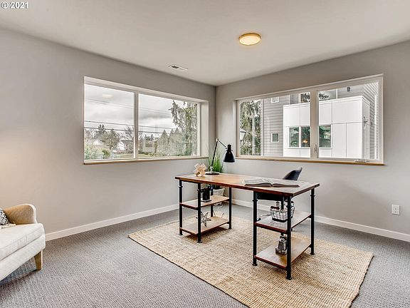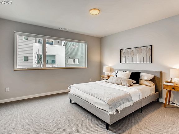 Stylish contemporary design w/ open floorplan, light filled rooms, tall ceilings & luxurious amenities. Gourmet kitchen w/ 2 tone cabinets, quartz waterfall island, SS Bosch appliances, open shelving & hardwood floors. Master features wet room w/ walk-in shower and deep soaking tub combo for a spa experience. Tons of storage! Heat pump, fresh filtered air system, blown-in insulation & EV/solar ready for an impressive $79/mo in utilities. EA Platinum. Dog park, trails & Park across the street!
