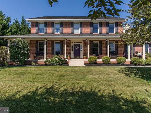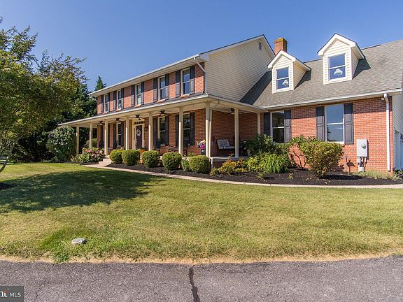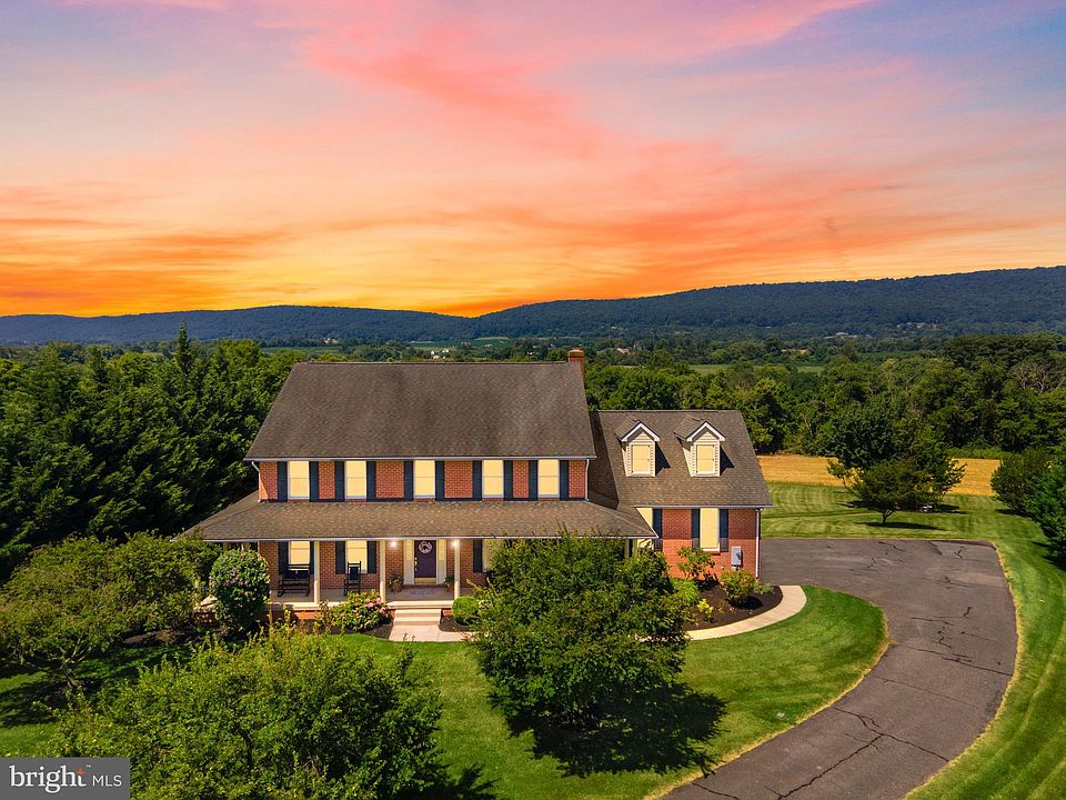 Stunning brick front Colonial with 3 finished levels and roughly 4000 sq ft of finished living space. Nestled on a quiet acre at the end of the cul-de-sac with mountain views this home is a peaceful oasis. Main level offers in-law suite with private bedroom, bathroom, formal living room, and sitting area. Main level also boosts an eat-in kitchen w/ stainless appliances and kitchen island, large family room w/ fireplace, formal dining room with breathtaking views to enhance any meal experience, office/den area, powder room and mudroom/laundry room off garage. Upper level includes primary bedroom w/ attached bonus room/nursery/library, primary bathroom w/soaker tub, walk -in shower, long vanity with seating area for hair/make-up, and dual walk-in closets, and two additional bedrooms with private bathrooms. Walk-out lower level with full kitchen and laundry area, bedroom, full bath, large family room, bonus room, cedar closet, and multiple storage closets. Also includes side entry 2 car garage, main level deck featuring views of fields and mountains, large wrap around porches, and lower level patio to relax and enjoy life. No HOA. Desired Middletown Schools. Don't miss out on this one!