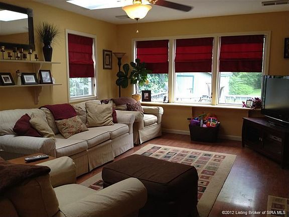 Welcome to this Charming Bungalow located at 6626 St Rd 62, this 3BR 1.5 BA Home is on wooded 1.3 acres & is ready for a new owner!! The home has been updated throughout! The Living Room has a great view to the back yard and allows a lot of natural light to enter. The Kitchen has new flooring and all the appliances are included, it also has a Breakfast/Eat In area and a Formal Dining Room. The home has another Family Room which is being used as Office/ Playroom. The Master Bedroom is on the first floor with a Half Bath and 2 Very Big Walk-in closets. The Remodeled Bathroom is on the first floor with new tile flooring and a granite vanity top for the sink! The Laundry room is also on the first floor. The 2nd and 3rd rooms are on the second floor. 24x24 detached garage with automatic garage doors openers and a 16x12 Sunroom You will find that is home has a lot to offer !! Call today for your private showing.