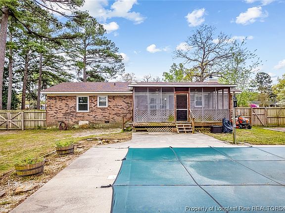 Jack Britt school district: Beautiful 3 bedroom, 2 bath with unground pool and one of the biggest fenced back yards in the area. Open concept eat in kitchen with plenty of cabinet space, accompanied by French doors paving the way to the screened in covered porch leading to the pool area. LVP flooring throughout main living space and bedrooms; bathrooms are tile, and living room and laundry have a unique, one of a kind epoxy style cement floor. NEW roof in December 2018, NEW HVAC and duct work in 2020. Pool updates: NEW pool liner 2020, NEW sand filter and NEW pump 2022. This home is cozy and perfect for entertaining.