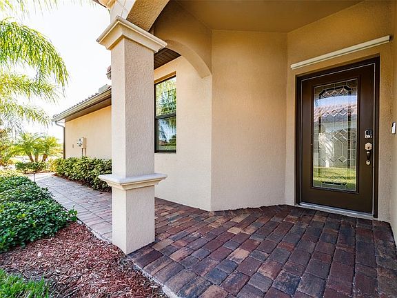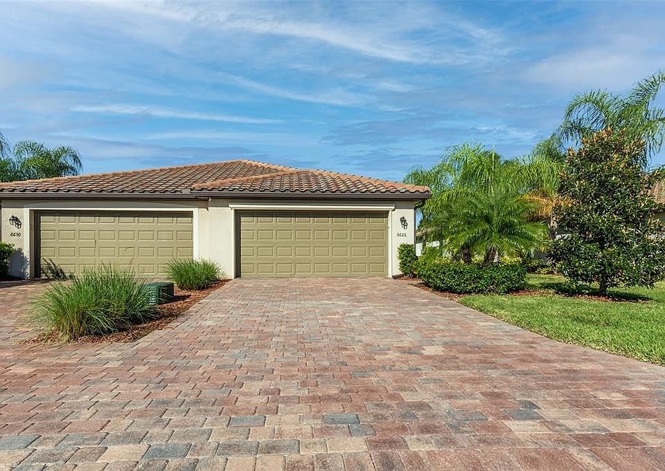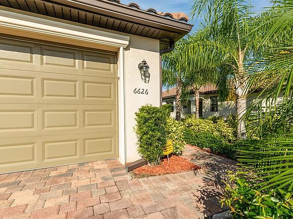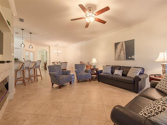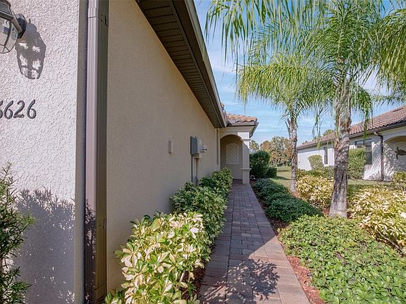 This UPGRADED VILLA is waiting for you in the fun community of River Strand Golf and Country club! It includes a full SOCIAL MEMBERSHIP with no golf fees required. This will make a great primary residence, winter home, or vacation rental for income! The open floorplan of this Model has been upgraded to include a fireplace with electric heater for those cool winter evenings. There are 2 bedrooms, 2 baths and a flex room perfect for an office, a library, and would be a great place for a murphy bed. The kitchen with breakfast bar, and SS appliances is the perfect size. The windows and sliding glass doors have all new plantation shutters The paved lanai with a peaceful water view is perfect for breakfast or after work cocktail. The master bedroom and the den have french doors and tile floors. There are two closets and the master bath has two sinks, a soaker both tub and shower. The split floor plan puts the guest bedroom and guest bath at the other end of the house, allowing privacy for your guests. The 2 car attached garage is plenty of room for you car and some storage space. There are upgraded ceiling fans and lighting and the washer and dryer are included in the laundry room. Your social Country Club membership will let you enjoy the ALL OF THE AMENITIES of the country club except golf! There are two resort style pools and spas, a tiki bar, 2 fitness centers, a restaurant with formal dining room and a separate grille and bar. You can enjoy the dog walk park, pickle ball and tennis courts and social activities all year long! Membership in Heritage Harbour Golf & Country Club is available. Centrally located close to I-75, the new Costco, close by golf courses, and some of the best beaches in the world. Schedule your showing for this special property today! This property will sell quickly.