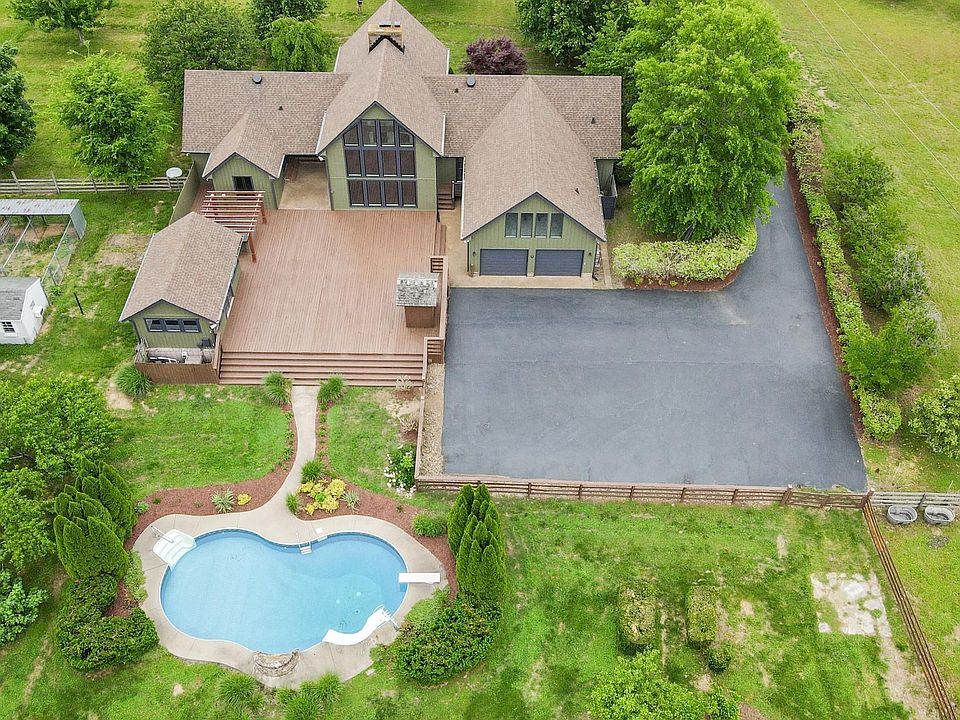 Private gated entrance on 17acres! Just 20 min to Downtown. Beautiful picturesque views of the rolling hills from inside twostory greatroom & library w/ 18 wall of new windows and vaulted ceilings!Master on main, spa style bathroom + 2 bedrooms main level. Billiards library, office and flex room. Entertainers delight! Open Kitchen, 2 fireplaces- French doors leading to huge deck to pool and resort style amenities. Enjoy summers with spring fed fishing pond/dock and acres of AG land 2 stall barn