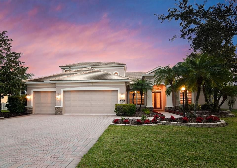 ***Multiple Offers Received*** Sellers requesting buyers highest and best by 8:00pm on 12/10/2020. Welcome to the sought after Greenbrook Vistas neighborhood located in the award-winning Lakewood Ranch community. As you pull into this home you'll be impressed with the pavered driveway, stacked stone details and coach lights, along with the meticulously manicured lawn and tropical landscaping. A 3-car garage with automatic lifts offer plenty of parking for recreations vehicles, motorcycles, boats and golf carts. The front porch has tapered columns with an upgraded double front door and glass insert that leads to a grand foyer showing off this open floor plan. Modern ceramic tile floors stretch throughout the main living space and the walls are accented with tasteful panel moulding that ties in perfectly to crown moulding throughout the home. Passing a functional formal dining room with chandelier, you'll notice a butler's and closet pantry that lead into the updated kitchen with backyard, pool, and water views. Cherry wood cabinets with hardware, a tiled backsplash, granite countertops, and upgraded slate appliances including a Gas Range round out this Chef's and entertainers delight. A high-top bar with pendant lighting ties the kitchen into the living room allowing dinner parties and guests to flow seamlessly from room to room. With high ceilings and lots of sliding glass doors, you'll be able to enjoy the real Florida lifestyle from your living room, or from the fully screened pool, spa, and back patio area. The spacious master suite enjoys the same views and access to the pool, but with the privacy and features you'd expect including a huge walk-in closet, large spa-style bath with jetted tub, shower, water closet, dual vanity, and make-up counter. If you're enjoying work-from-home then you'll love the den with neighborhood views and functional built-ins to maximize workspace and storage for 2 people if needed. The indoor laundry room takes the hassle out of doing laundry with upgraded cabinets, storage, utility sink, and a thoughtful location in the home. With 4 bedrooms and 3.5 bathrooms there's plenty of room for households of all sizes and guests. Greenbrook residents have access to A-rated schools, playgrounds, baseball fields, a volleyball court, dog park, pavilions and more. Its central Lakewood Ranch location means convenience to golf, tennis, restaurants, shopping, and world-renowned beaches. This home is one mile from McNeal Elementary and Nolan Middle School and enjoys a low HOA fee.