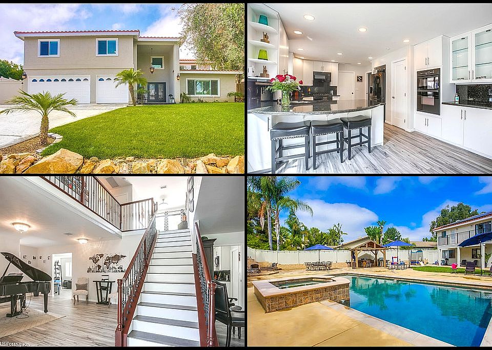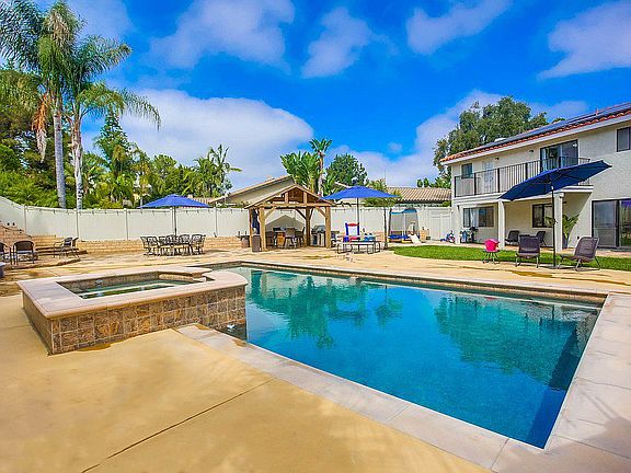 Do not get stuck with two homes, buy this home and I will buy yours!* RV parking! 3-Car Garage, Luxury Pool and Spa and NO HOAs! Rarely available La Costa Meadows home! Fantastic gem of a property on a large corner lot. Spacious living area, remodeled kitchen and granite countertops. Tile floors throughout the upper level. Fabulous master w/walk-in closet and gorgeous bathroom. Four additional bedrooms upstairs and a large office downstairs. Beautiful backyard paradise with pool, spa, and waterfall, BBQ with palapa, and huge grassy area. Additional area for RV parking and plenty of room for all your toys.