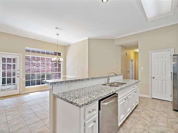 Cozy gas log fireplacePrivate patioStainless steel appliancesLight-toned granite countertopsStainless steel sink