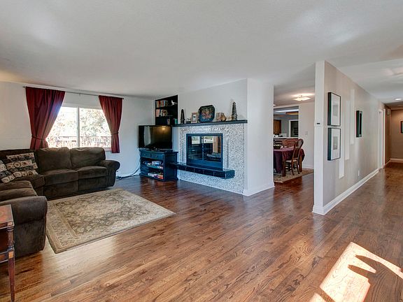 A circular driveway, mature trees and enormous yard welcome you to this light and bright ranch home on a spectacular, private .93 acre lot! The main floor features three nicely sized bedrooms, a cozy and bright living room, and two remodeled bathrooms. The kitchen opens to the oversized deck and adjoins the eating space where you will find the original, double sided, mid-Century modern fireplace with custom tile surround. Plenty of updates in the last two years (windows, huge Trex deck, exterior siding, and paint) coupled with an abundance of original character and charm, make this home move-in ready and incredibly livable. The basement was recently updated, and contains a large family room with egress windows and fireplace, and a bonus room that could be an office or non-conforming 4th bedroom. An oversized two-car garage with attached workshop has plenty of storage and room for your projects. The Cherry Creek Trail and Cherry Creek State Park are in close proximity, as are many shops, restaurants and services. Cherry Creek Schools!