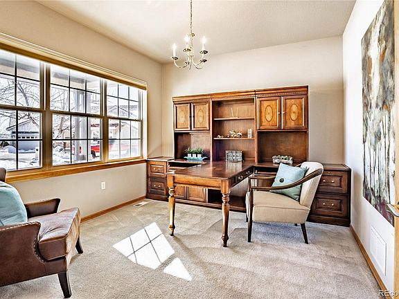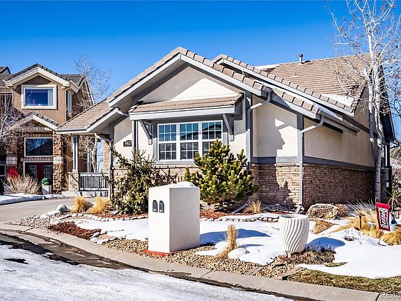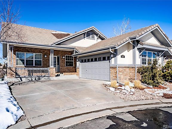 This sunny and spacious ranch style home in Saddle Rock welcomes you. Southwest facing front porch. Wide open entry, with an office off to the left. Large formal dining room. Open living room with access to the deck off the back with great views! Gourmet Kitchen is open to living room with gas stove, double ovens and large pantry. Entry from the garage is a separated mud-room with sink, closet and additional cabinets. The primary suite has a 5 piece bathroom, and large walk-in closet. Also on this level is an additional 1/2 bath. The walk-out basement has 10' ceilings making it feel light and airy. Finished recreation room offers lots of entertaining possibilities. 2 additional bedrooms both with huge walk-in closets. You'll also find a full bathroom on this level. There is also a large storage area where furnace and water heater are located. This has more like a 2.5 car garage with workshop area. The house has been lovingly maintained for the last 18 years by the same owners. Small xeriscaped yard, making maintenance a breeze. Low HOA for the area. Saddle Rock is a beautiful golf community with lots of trails and parks interweaved. This property is located between Smoky Hill, Arapahoe and 470 with easy access to multiple shopping and dining options. Cherry Creek Schools.