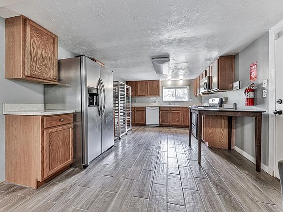 - Kitchen Features: Cabinets Stain, Laminate Counters, View to Family Room