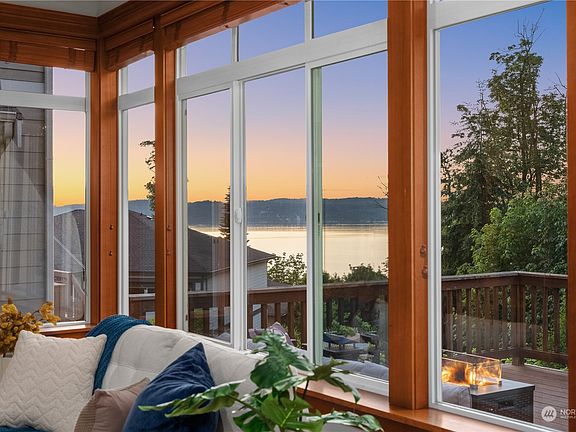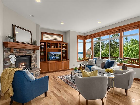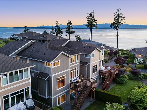 VIEW HOME! Welcome to the coveted gated community of Waterton. Appreciate the timeless craftsmanship of a Burnstead home while you wake up to the sun rising on the Olympic Mtns & end each day with your favorite drink as you watch the sun dip behind Whidbey Is. Large primary offers breathtaking views, WIC, and generous primary bath. Two more bedrooms up incl. Jack & Jill bath. Views from each level, additional living space down includes wet bar & fireplace, impeccable hardwood floors, this is a must see. One of the few Waterton homes with a backyard! Plus just across from community park!! Deck, plumbed for gas. Dual zone heat/AC, and more. Be sure to explore the serene community bluff trail with incredible views.