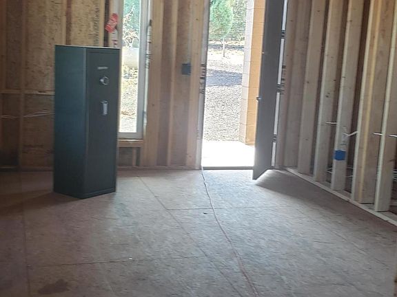 Quality partially constructed home with panoramic views and 2 master bedroom suites split floor plan and an additional 1/2 bath ready for you to finish into your dream home. The home sits on 4 fenced acres with shade trees, fully irrigated, and backs up to forest land. 10' ceilings, a 632 sq. ft. covered porch, inside laundry, underground utilities, a 3 ton A/C unit, 1000 gallon certified septic. Home comes with a permit ready for you to build a 30' x 30' garage (900 sq. ft.). House is approx. 70% complete (all electrical, plumbing, heating, and cooling is complete) builder is willing to contract to finish home to your preferences.