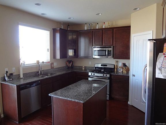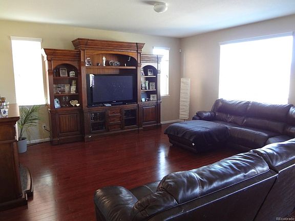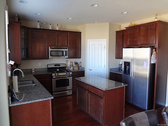 Gorgeous 2-story home in the highly desirable Banning Lewis Ranch area. Stunning views of mountain range from back yard. Home was built in the first filing so has a much larger lot than others in the neighborhood. This home features large master bedroom with adjoining 5-piece bath with soaking tub and walk-in closet. All the bedrooms are on the upper level along with the Den and laundry area. Hardwood flooring on main level entry, hallways, and kitchen area. Gourmet kitchen boasts 42" high cabinets, granite counter-tops. Stainless steel appliances included. Fenced back yard. Plenty of room for your vehicles with 3-car garage.