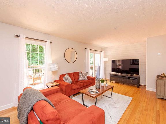 Fall in love at first sight with this exceptional end unit townhome! Remarkable curb appeal lures you inside to find gleaming hardwood floors spanning the main level, including a newly remodeled eat-in kitchen featuring timeless white cabinetry, sleek quartz counters, deep sink, stainless steel appliances and stylish light fixtures. The open concept living and dining areas are flooded with natural light and feature a charming shiplap accent wall and access to a Cali Bamboo maintenance free deck with custom removable privacy screens and sail shade, ideal for outdoor entertaining. The upper level hosts three comfy bedrooms and two recently updated full bathrooms, including the owner's suite featuring a lofty vaulted ceiling with dimmable light ceiling fan, walk-in closet and full bath with frameless glass shower. Lower level offers a spacious recreation room with walk-out access to the paver patio, which can be enjoyed rain or shine, with an under-deck drainage system that feeds to a rain barrel for optimum water conservation, as well as the laundry room with plenty of storage space. Complete with new roof installed in 2018, newly updated lighting, fresh neutral paint throughout the interior and custom landscaping, this home is impeccable and move-in ready today!