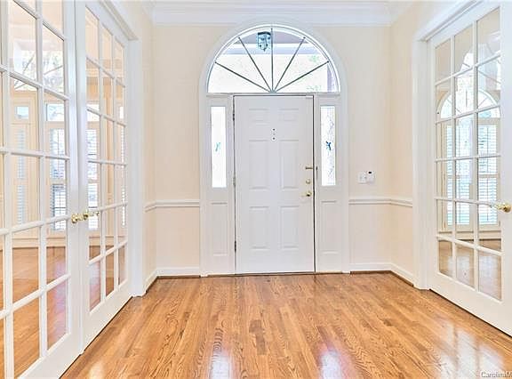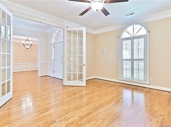 This beautiful ranch home is in great Hunters Gate community and located on a cul-de sac tree lined street. Close to Blakeney, Waverly, Rea Farms, and the Fountains with shopping & dining. Top Rated schools! Open floor plan with large bedrooms, possible 2nd master (2 bedrooms made as 1 bedroom). Large great room with vaulted ceilings, skylights. Beautiful hardwood floors throughout living areas. French doors in dining, living/office rooms for privacy. Kitchen has white cabinets and beautiful granite with an island. Updated master bath and master closet with built-ins. Beautiful backyard with lots of privacy, trees and Trex decking with retractable awning & extended patio. Washer & dryer are in the place.