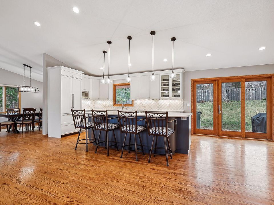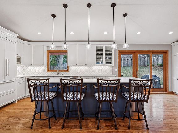 This turn-key and remodeled rambler in Parkwood Knolls sits perfectly on a quiet cul-de-sac street across from Nine Mile Creek and the regional walking trail. Enjoy all the features that this home has to offer: an enameled kitchen with new counters, a custom backsplash, beautiful built-ins for additional storage, and an oversized center island perfect for entertaining all your guests. The open and spacious main floor boasts gleaming hardwood floors, fresh paint, and new light fixtures. The owner's suite is complete with a spa-like bath, a maintenance-free deck, and a large walk-in closet. The basement features an additional fireplace in the family room, a flex space which can be used as an exercise room or office, as well as plenty of storage. Hard to find 3-car garage. Prime Edina location within steps from Walnut Ridge Park and quick access to local shopping, schools, and restaurants.