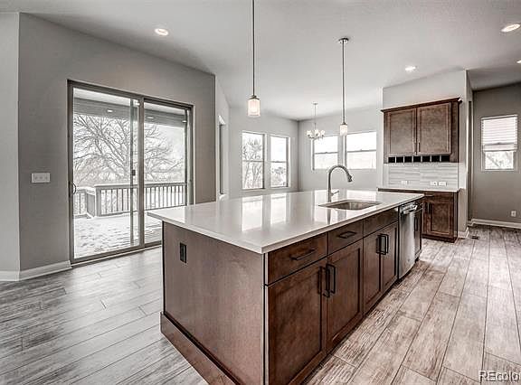 Prepare to be greeted with tons of stylish and energy efficient upgrades the minute you set foot in this Welcome to your BRAND-NEW David Weekley home! This lovely Topaz model backs to Open Space! Open floor plan w/ durable laminate 'hardwood' is perfect for entertaining. Gourmet kitchen w/ stainless steel appliances, quartz surfaces, island, upgraded cabinets w/ brushed metal hardware. Peaceful master retreat w/ huge walk-in closet. En-suite bath features quartz double vanity, over-sized mirror, large Euro-Style Shower. Enjoy downtown views at sunset from the covered porch in rear. Garden level basement with 9' ceilings continues the open, expansive feel of home. Active Radon Mitigation System. Tankless water heater. 1-Yr Full Builder's Warranty and 10-year Structural Warranty. Clubhouse available for parties, community garden, dog park, playground. Close to bike path and RTD Bus & Light rail. New school coming in 2019 & just 5 miles away from Downtown Denver-about a ten-minute drive!