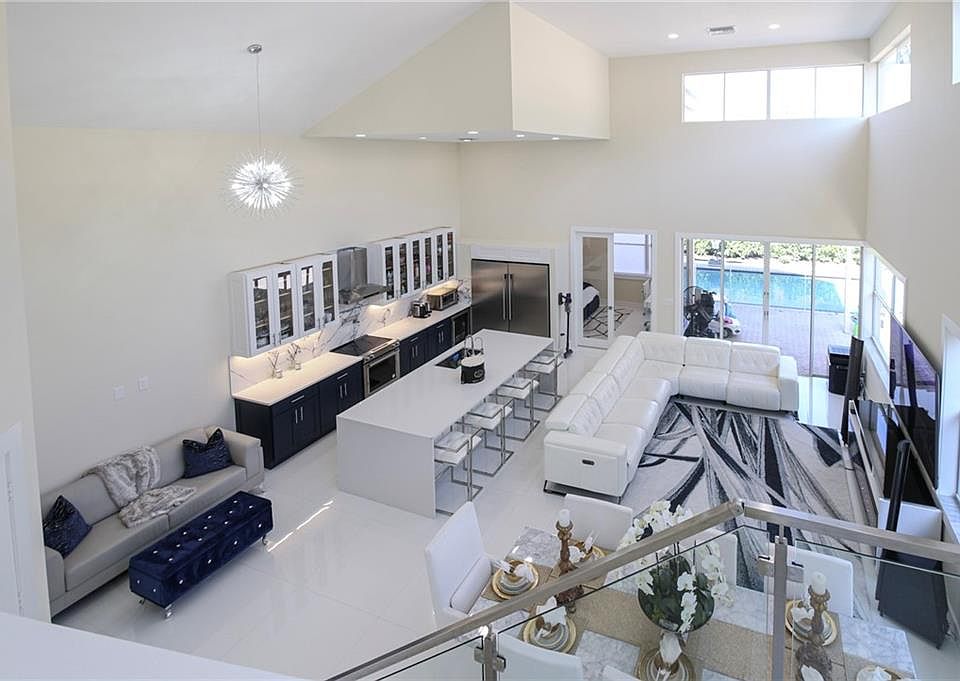 This renovated 4 bedroom and 2.5 bath home is being offered in the iconic Broken Sound Banyans community. This home features an open floor plan with plenty of nature light, white porcelain tile throughout, an expansive granite island bar with plenty of storage, and a modern glass staircase. The kitchen has high-end Kitchen Aid appliances: over sized refrigerator and freezer, and beverage cooler. The backyard boasts a covered patio with a beautiful heated pool. High-speed internet and cable included.