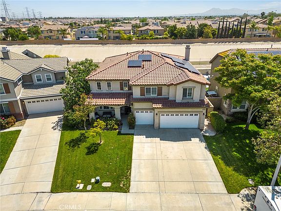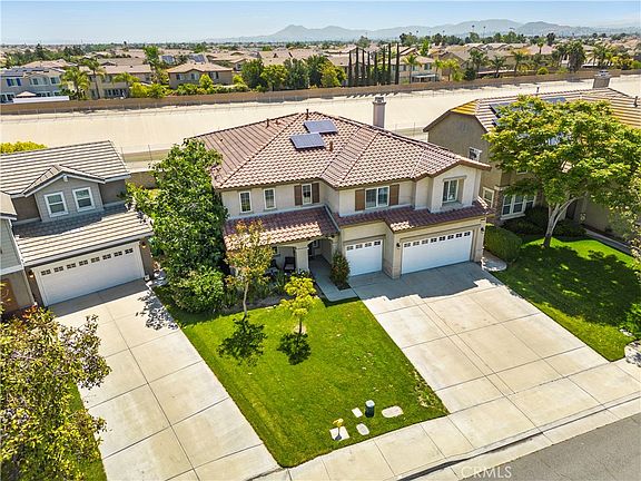 Welcome to your dream home in the heart of Parkview Meadows in Eastvale. This stunning 5-bedroom, 4.5 bathroom residence embodies a blend of comfort and efficiency. Situated in a quiet and family-friendly neighborhood. Upon entry, you're greeted by pristine tile floors that flow seamlessly throughout the main level. The updated kitchen with quartz countertops and stainless steel appliances, beckons to the chef within.The spacious layout includes a convenient bedroom downstairs, perfect for guests or multi-generational living, while the upstairs reveals a sprawling master suite and 3 additional bedrooms, each offering comfort and privacy with a large bonus room. With no rear neighbors, you can relax and enjoy the beautiful views without any disturbances under your beautiful Alumawood patio cover. With paid off solar panels ensuring energy efficiency and cost savings, and top-rated schools, shopping, and dining just moments away, this home epitomizes modern suburban living at its finest. Don't miss the chance to call this remarkable property your own – schedule a showing today!