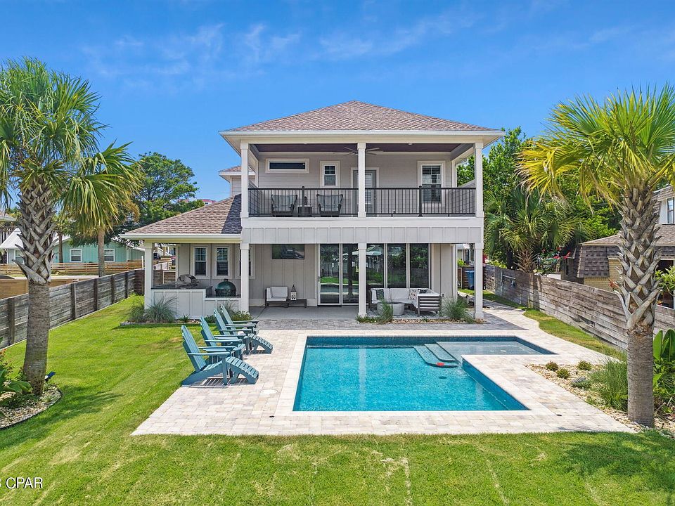 Welcome to this stunning waterfront home at 6628 South Lagoon Drive, Panama City Beach, FL 32408. Built in 2021, this modern gem boasts Gulf access by boat and close proximity to the beach, making it an ideal haven for water enthusiasts and beach lovers alike.The home features a state-of-the-art kitchen equipped with a 6-burner gas range, quartz countertops, and a pot filler over the stove. The open-concept living area expands onto the patio through a nano wall, seamlessly blending indoor and outdoor living spaces.Outside, the property is a true oasis with gorgeous wood ceilings, a gas fire pit, and outdoor kitchen. Kitchen outside is equipped with a gas grill, Big Green Egg and an under the counter fridge. A pool is the focal point of the back yard with a sun ledge and pavers around the perimeter. A beautifully maintained lawn leads to more pavers, and a dock with a 13,000 LB lift. The dock will accommodate up to a 30 ft boat. The stunning views of the Grand Lagoon never get old , and it's only a 10 minute ride to Shell Island or the pass to the Gulf of Mexico. Dine out on the lagoon or bay by boat to one of the many restaurants that provide waterfront parking. This beautiful home offers a unique blend of luxury, comfort, and access to Florida's stunning natural beauty. Whether you love boating, swimming, or just soaking up the sun on the beach, this home offers it all.