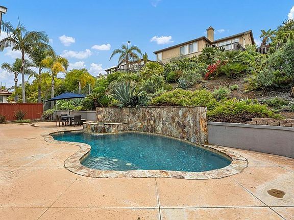 Tucked away on a coveted corner lot within the desirable Encantada community of Aviara in Carlsbad, this meticulously maintained residence offers the perfect blend of flexible living spaces and resort-style outdoor amenities. Set on a quiet cul-de-sac, with eye-catching curb appeal, this home spans approximately 3,476 sq. ft. and features 5 bedrooms, 3.5 baths plus a spacious loft, and retreat off of the primary bedroom. Eco-friendly bamboo floors, plantation shutters, and dramatic architectural columns accent the formal living and dining areas, while the open-concept kitchen boasts stainless steel appliances, crisp white cabinetry, an eat-up island, and a large pantry. The kitchen and family room flow seamlessly to the backyard oasis, where a sparkling saltwater pool with a fountain feature and spa invite you to relax and entertain. Low-maintenance artificial turf, thoughtfully landscaped hillside, and multiple lounge areas offer year-round enjoyment of Southern California’s outdoor lifestyle. Upstairs, a catwalk with dual built-in study nooks connects the secondary bedrooms and the oversized loft, perfect as a media room, teen hangout, or game room. The expansive primary suite serves as a private retreat, complete with a sitting area or office space, generous walk-in closet, and spa-like bath featuring dual vanities, a soaking tub, and a large walk-in shower. Additional highlights include a 3-car attached garage, whole house water filtration system, fully owned solar panels, attic fan, central A/C with dual compressors, and a water heater replaced in 2020. With minimal HOA fees ($70/month), low Mello-Roos and access to top-rated Carlsbad schools, this home is ideally situated near beaches, the lagoon, premier shopping and dining, La Costa Resort, Park Hyatt, and scenic hiking trails. Buyer and buyer’s agent to verify all in MLS prior to COE.