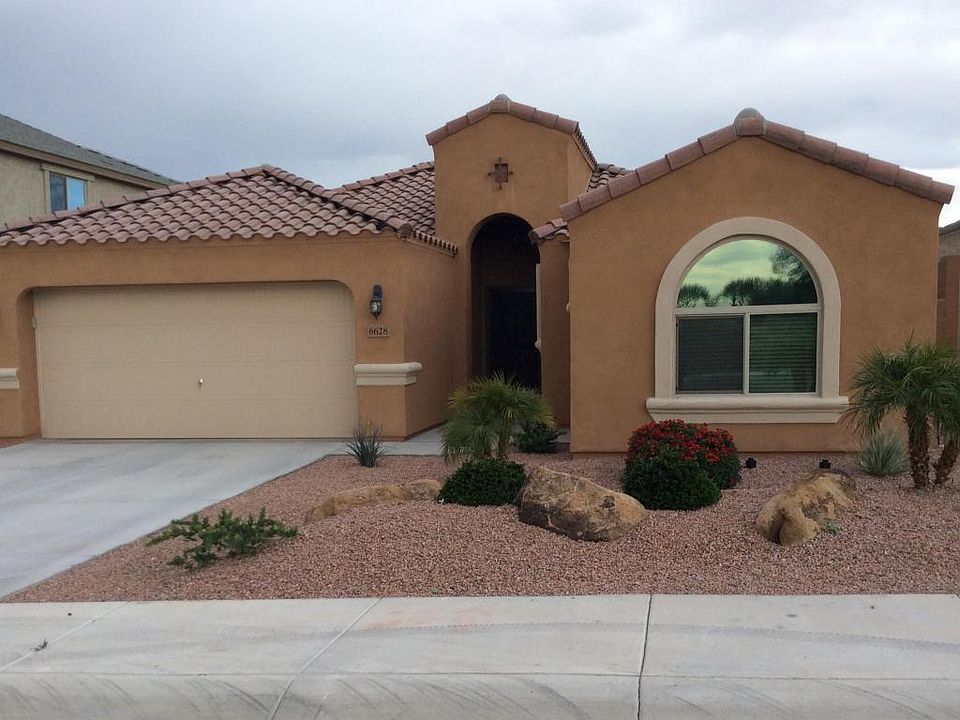 Welcome to your NEW home!! This 3 bedroom, 2 bath home was brand new in 2015 and has had no pets, no smoke ...ever. Mr. Clean lives here! Decorating will be fun with the contemporary gray (cement) and white color scheme and 9'+ ceilings throughout. The open-concept kitchen and great room are large and inviting, perfect for a cozy gathering place and entertaining. Granite countertops, stainless steel appliances, gas oven and cooktop, and a large walk-in pantry are just a few of the kitchen features. The split master bedroom has a large walk-in closet and an en suite bathroom with an extra large walk-in shower. The front and back yards are desert landscaped with sprinkler/irrigation systems and timers. Many schools from pre-K to college are in close proximity.