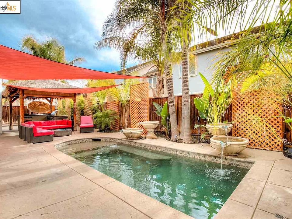 WOW OWNED SOLAR! No more high electric bills and an entertainers dream inside and out. Great curb appeal with new exterior paint and landscape. Amazing heated pool, built in bbq area and a tiki bar to make you want to never leave your backyard oasis. Inside you have built in speakers throughout home, an open concept kitchen/living area to entertain, or just cozy up by the fireplace There is an additional family room with a magnificent wall library to relax in. A full size junior suite downstairs and a formal dining room with a butler pantry leading to the kitchen. The downstairs master suite boasts a large double sink vanity, stall shower, jetted soaking tub, a spacious walk in closet and sliding glass doors that open to the backyard. Upstairs there are two more bedrooms, full bathroom and a large loft. There is also an attached three car tandem garage to give you that extra space. Come and make this your home in the beautiful Lakes community!