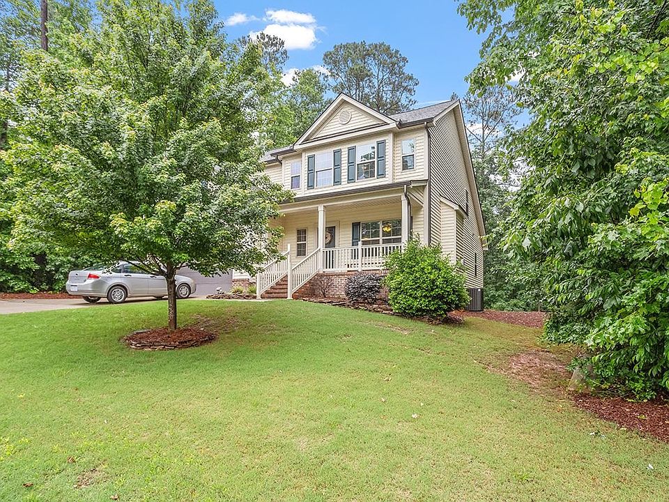 Come check out the NEW Antique barnwood Pergo timbercraft and wet protect flooring throughout the first floor in this Fantastic open floor plan, CUL DE SAC home! DOWNSTAIRS primary with tray ceilings, ensuite and a walk in closet! Bathroom has dual sinks with granite countertops, garden tub and separate shower. Kitchen has granite countertops, gas range, large island with seating overlooking both the dining room and the family room! Sunroom leads to the deck overlooking the huge backyard! Upstairs are 2 more bedrooms and a bonus room all with walk in closets! A covered front porch, 2 car garage, extra parking space in the driveway, sprinkler system, new roof 2020 to top it all off! Welcome Home!!