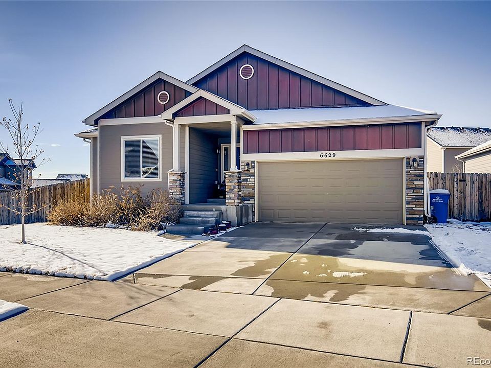Welcome home to 6629 Catalpa Circle! This move-in ready home has a wonderful open floor plan with plenty of room for entertaining! As you enter the home you are welcomed by soaring ceilings, beautiful hardwoods, and an abundance of natural light. The eat-in kitchen boasts granite countertops, stainless steel appliances, pantry and opens to the living room. The kitchen is plumbed for gas if that is your preference. Cozy up to the fireplace on those chilling winter days, and enjoy the spacious backyard with mountain views in the beautiful Colorado sunshine! The master suite boasts vaulted ceilings, ensuite 5pc master bath with huge walk-in closet! Two add'l bedrooms, full bath, and laundry are on the main level. Head downstairs to the basement and you will not believe all of the space! There is a huge family room with plenty of room for recreation, as well as two add'l bedrooms and full bath. Great location, you do not want to miss this opportunity!