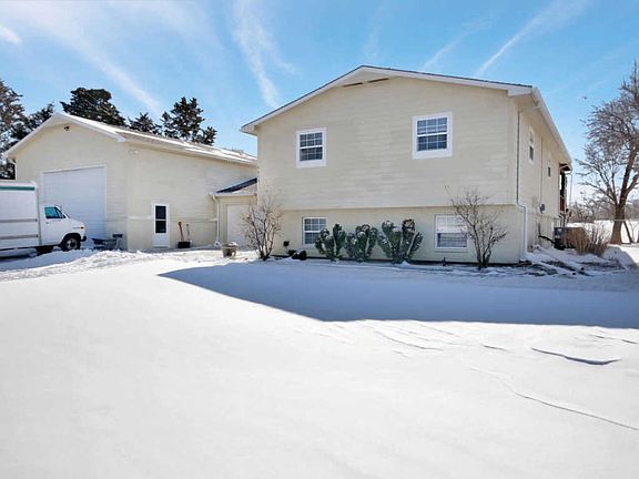 Enjoy country living & the convenience of Wichita and Derby amenities within minutes! Not to mention an opportunity to earn a full living working out of this enormous workshop! Seller has shop currently set up to manufacture solid surface countertops and custom cabinetry - yet it would also be a mechanics DREAM! Complete with full bath!! The home has been well cared for for 20+ years! Kitchen has solid surface counters, large 2 bowl sink and pull out shelves in pantry cabinet and lower appliance base cabinet! You will find NO CARPET in this home - all floors are a laminate or tile surface - easy care & cleaning!! The master has a 3pc on-suite, with solid surface counter, tile shower and closet! Main bath has custom distressed vanity with custom mirror/medicine cabinet . . . farm house style! The basement fireplace has wood burning insert and facade has been updated with custom brick facade! You'll love the storage and in the lower level laundry/utility area and the spaciousness of the lower level bedroom! In addition, the vacant lot to the south of this home is also FOR SALE (as a separate purchase)! Don't miss this one of kind & schedule your showing TODAY!