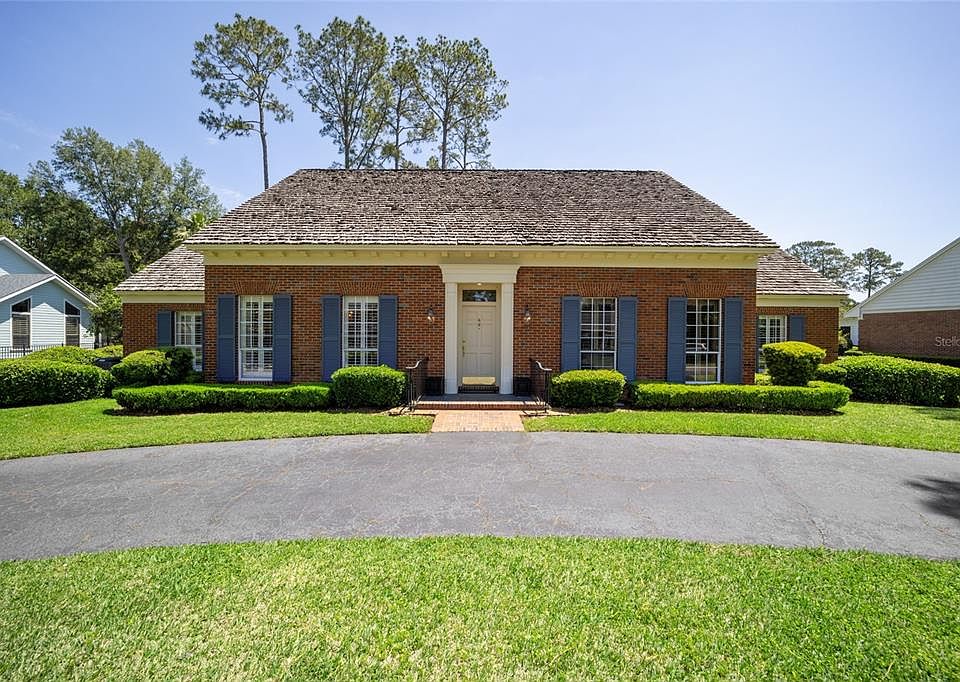 Welcome Home!. This charming New England styled brick home with its 2022 new architectural roof, and with its side entry 2 car garage, offers approximately 3,888 heated and cooled sq. ft. with 3 bedrooms, a separate study, and 3 ½ baths. Built by M.M. Parrish construction with striking features, including brick floors in the foyer, kitchen, breakfast area and family room, rich wood floors, an abundance of custom millwork throughout, 2 fireplaces with custom built-ins, plantation shutters throughout and storage that is unparalleled. The formal dining room has rich, hardwood flooring; the room easily accommodates seating for 12+ guests. In addition, there is a walk-in china/crystal storage closet. Perfect for entertaining! You will fall in love with the large open kitchen that boasts wood cabinetry, granite countertops, a center island, and a built-in wall oven. The breakfast nook is generous in size, and offers direct golf course views. The nook, along with the kitchen, both open onto the family room area. The brick flooring in the kitchen connects to the nook and family room areas. The family room has a brick wall that extends from entry into the family room toward the French doors on the back of the home. This wall encompasses the fireplace, and has a raised hearth for additional seating, and custom built-in shelving. The formal living room has large bay window with view of the course. Open its set of French doors to enjoy the covered lanai for your morning coffee or afternoon cocktail. Best features of the living room are the beautiful white marble fireplace and a large walk-in wine closet. Adjacent to the wine closet is a convenient wet bar, complete with ice maker. A gracious sized guest room, which is en suite with a walk-in shower, and the study are on first floor, along with a ½ bath. The owner’s suite and secondary bedroom, both en suite, are large enough to cover most of second floor. In addition to the two upstairs bedrooms are two very large walk-in closets for air-conditioned storage and a separate linen closet. This home is situated on a .4 acre golf course frontage lot on a tree lined street in the Country Club Manor section of the Gainesville Country Club. This home offers less than a 15-minute commute to UF/UF Health. Trips to Publix and the surrounding restaurants will be quick trips for you, located only 5 minutes to the Williston Publix Plaza. A rare find and comes with many treasured memories!