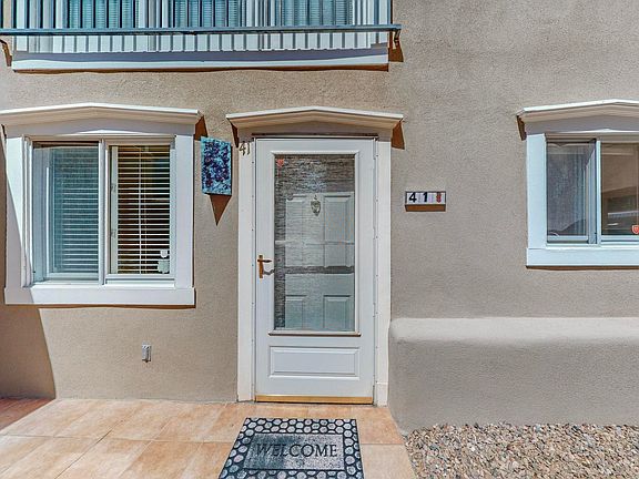 A dream location for your Santa Fe lifestyle! Walking-distance to the famed historic Santa Fe Plaza/shops/restaurants/museums and Ft. Marcy Recreation Complex. A true pied-a-terre, unit #41 is a ground floor end unit that is very special. With privacy, front-to-back interior natural light, a comfortable layout with galley kitchen open to the dining area and spacious living room with gas fireplace. A convenient (new) stackable W/D are in the bathroom, and the master bedroom has a large walk-in closet. There are 2 good-sized protected outside lockable storage closets, a long covered rear patio with french doors to/from both the living room and bedroom. The paint and carpet are newer and in excellent condition; the HVAC is just 1 year old. There is Central A/C! The HOA fees cover water (central water heater not located in-unit)/sewer/trash and ground and exterior building maintenance. Your designated covered carport parking space is immediately adjacent to the unit, an easy trip with groceries. The complex is pet-friendly and includes a doggie walk. The HOA allows for 30+night rental or long-term lease. So many possibilities for the new owner. Make this wonderful condo yours!