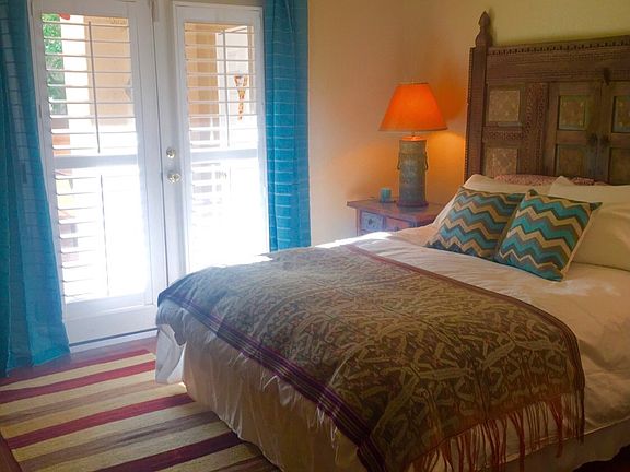 This Rare first-floor beautiful fully furnished quiet condo in the El Matador on Bishops Lodge Road in Santa Fe has a warm and bright interior and is tastefully decorated and thoughtfully furnished.. The back patio is a comfortable perfect spot to sit outside and relax and even includes a separate outdoor area for dinner .The back patio can be accessed from the living room and the bedroom through 2 sets of French doors. This gated community is ideally located just a few blocks north of the downtown plaza, and across the street from the Fort Marcy Sports Complex, which offers a large park, pickle ball courts, yoga classes , a workout facility and indoor pool. The El Matador Condominiums feature a gated entrance for security and a beautiful and lush interior courtyard. There is one reserved covered space in the carport, and several guest parking spots. This condo has central air-conditioning and a in unit washer and dryer . this is a non smoking quiet gated small community. There are two Storage closets on back patio .. and a Design Center sleeper sofa in the living room ..No pets. .. 6 month minimum lease .. owner pays water and sewer ..please contact me with any questions Available September 1, 2025 Minimum 6 month lease